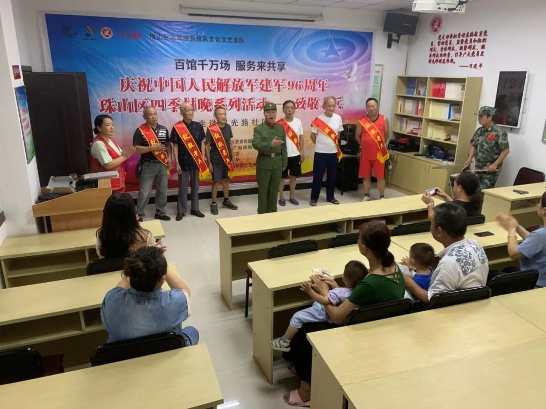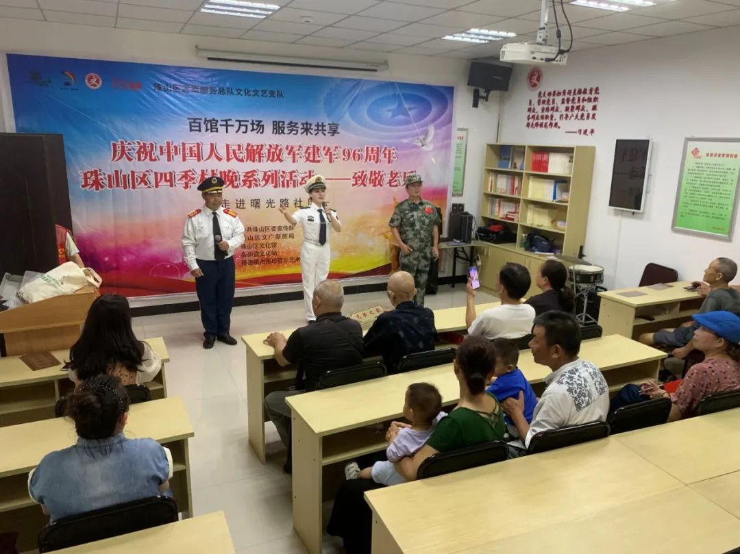 为庆祝中国人民解放军建军96周年,丰富活跃文化生活,近日,里村街道曙光路社区新时代文明实践站联合珠山区文广新旅局、景德镇市青松管乐艺术志愿者协会开展庆八一文艺汇演活动。