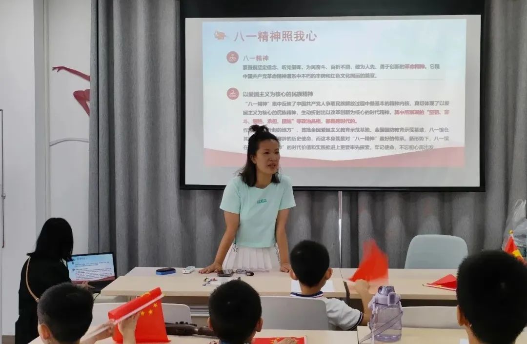 活动中,社区志愿者和社工们通过视频、图片向参与的青少年儿童讲解了建军节的由来以及景德镇瑶里新四军改编旧址、红十军诞生地南界首等红色景点,景德镇开国中将黄火星的伟人故事。以此加深了孩子们对于红色精神和建军节的认知。现场一位小朋友还饱含深情地为大家深情演唱了一首《红星闪闪》。
