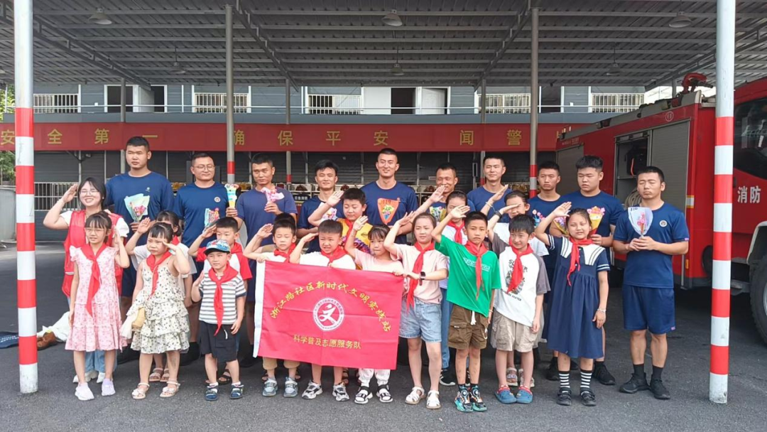 八一建军节来临前夕,珠山区太白园街道浙江路社区带领浙江路社区“益起创”公益集市志愿服务项目暑期托管班的小朋友们来到浙江路消防救援站,开展“致敬八一·礼赞军魂”主题活动。