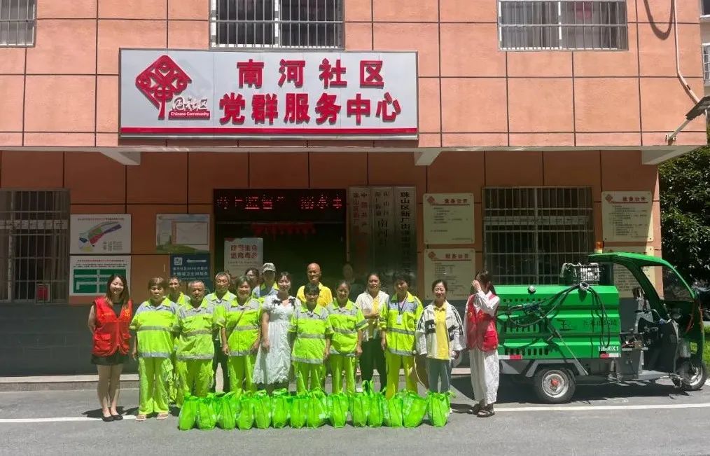 盛夏酷暑,烈日炎炎。为持续做好夏季防暑降温工作,关心关爱在高温天气中坚守岗位、辛勤劳动的户外工作人员,8月1日上午,南河社区党委牵头组织社区党支部、计生协、妇联、团工委、网格员、志愿者,共同开展“爱心降暑意 关怀沁人心 ”夏日送清凉活动。”