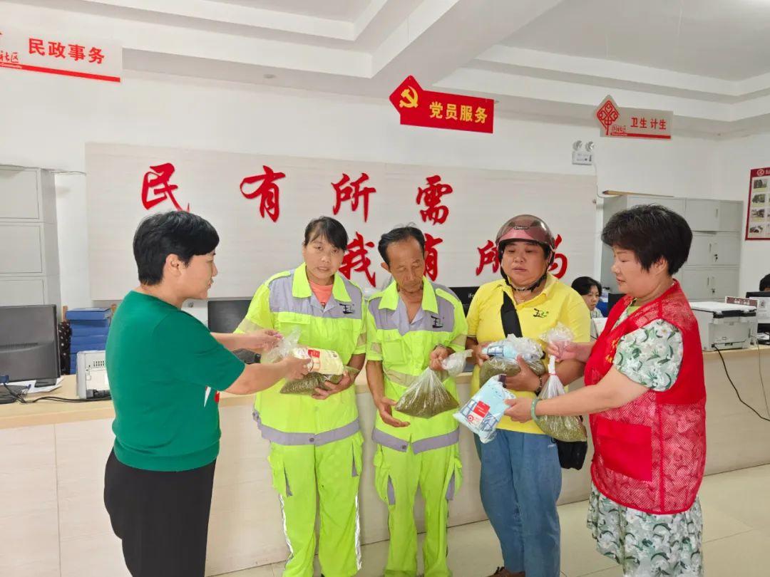 活动中,送清凉小组为玉禾田环卫工人送上了防暑降温慰问物资,同时为在烈日下坚守岗位的环卫工人、快递小哥、城管队员,送上了防暑降温的绿豆汤、防暑药品等,并叮嘱他们做好个人安全防护,劳逸结合,注意防暑降温,以更加饱满、安全的状态投入工作。