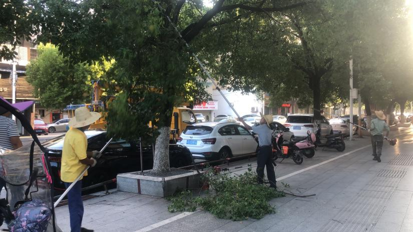 戴家弄社区工作人员发现后,多次到现场走访查看,对存在一定安全隐患的树木进行清理、修剪,最大限度消除安全隐患,保障居民人身财产安全。经过与园林部门协调,园林专业工人采取高空作业的方式,分段将过高的树枝进行了修剪和清理。经过长时间的作业,树干本身形态显得整齐舒展,辖区道路环境改“头”换面,显得格外干净利落,还消除了安全隐患。被树枝遮掩的招牌也显露了出来,商铺门店也更亮堂了。