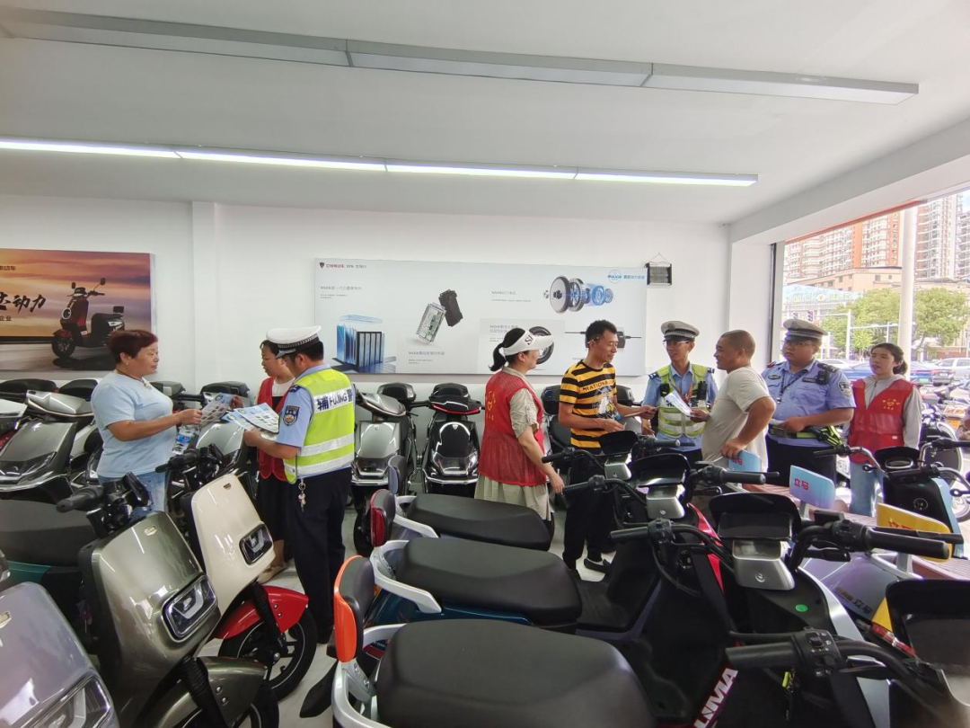随后,大家一起深入沿街店铺通过以案说法的方式对商户进行详细剖析酒后驾驶、疲劳驾驶、超速驾驶、分心驾驶等违法行为的危害,深入浅出地讲解了安全行车常识,并要求出售非机动车的商户将待售电动车长期占用非机动车停车位,造成停车位紧张和阻碍行人正常通行、店外维修车辆、长期堆放废旧零部件影响市容环境等问题进行现场纠正,进一步优化营商环境。
