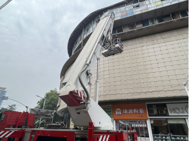 消防救援人员到达现场后严格落实安全措施,对于高处悬挂物驾驶员选择地基稳固的地段升起举高车辆,操作人员做好防护措施;在作业区域30米处设置警戒标识,严防作业时有行人穿过。经过三个小时的高空作业终于将大楼外的悬挂物全部拆除完毕。