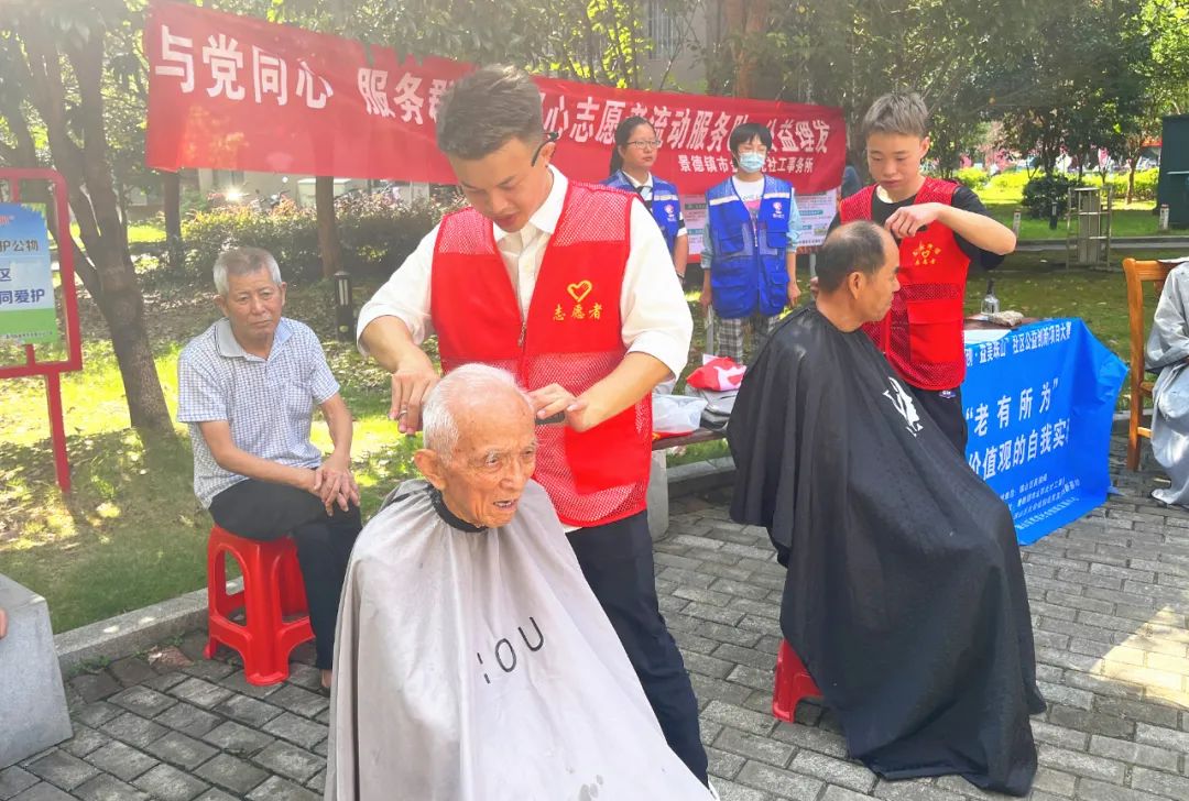为弘扬中华民族尊老爱幼的传统美德,切实为社区老人提供贴心便利的服务,增强老年人对社区的认同感,昌河街道景东安厦社区依托新时代文明实践站开展“公益理发进社区、便民服务在身边”爱心义剪活动。