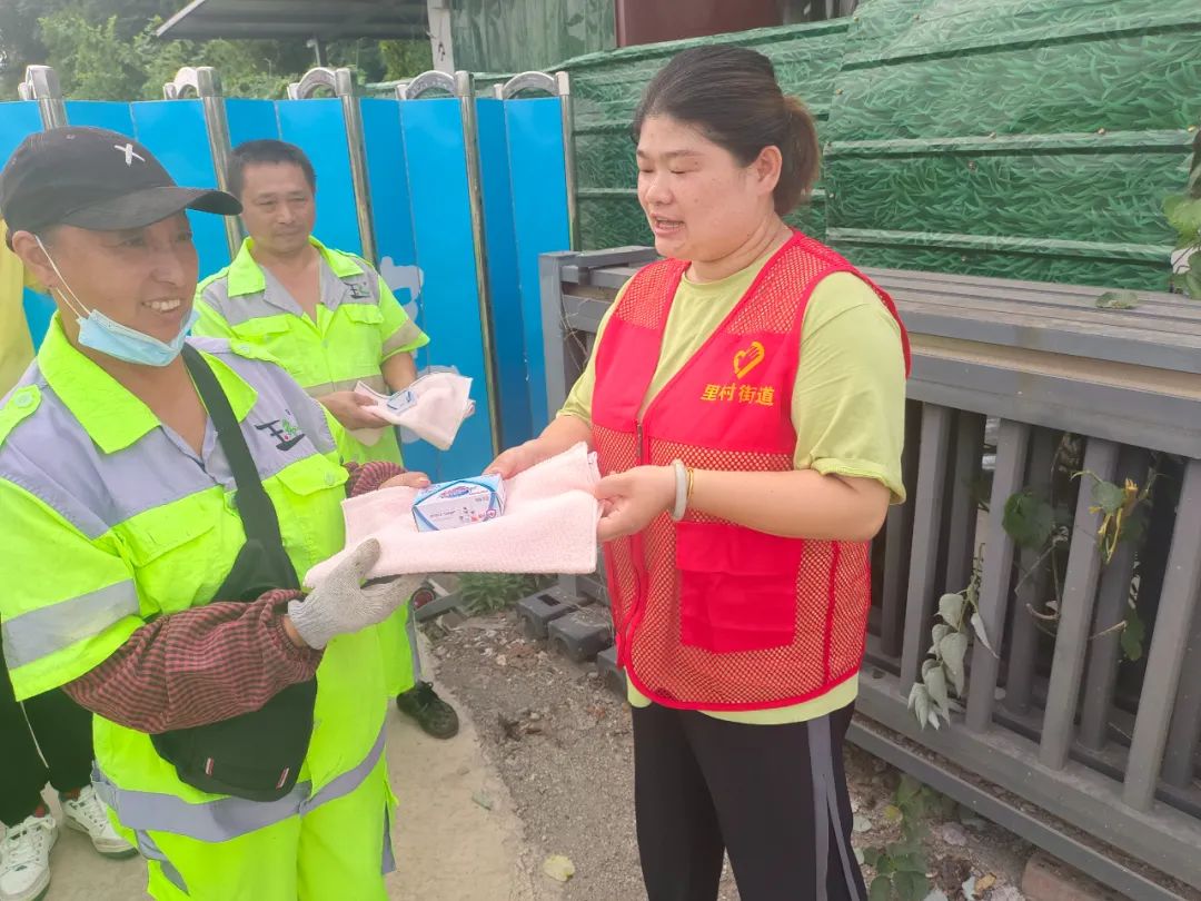 盛夏之时,酷暑高温,在大街小巷,依然能看到在炎炎夏日下辛勤工作的环卫工者,他们坚守岗位,为城市整洁奉献汗水。里村街道陶溪川社区新时代文明实践站开展“关爱环卫工 夏日送清凉”慰问活动。