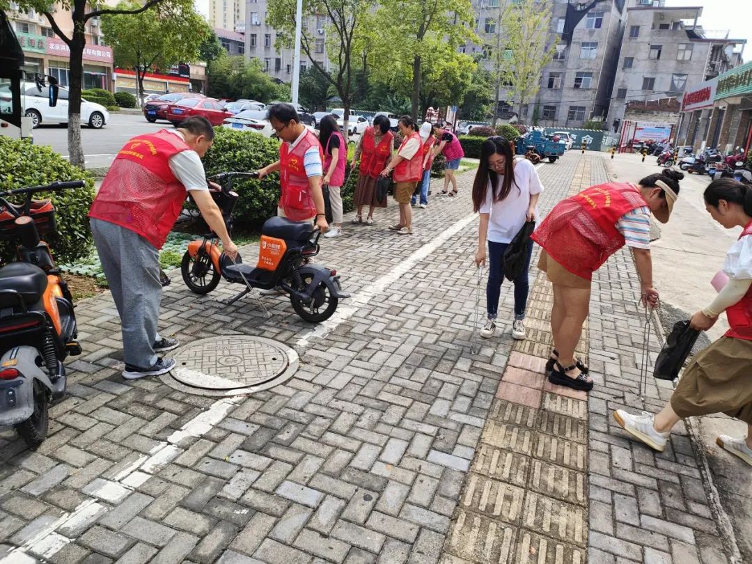 在行进途中,档案馆工作人员、党员志愿者们又化身为“文明交通”志愿者,大家身穿红马甲,对骑电动不戴头盔、电动车安装遮阳篷等行为进行劝导和监督。同时微网格员在小区内发放文明交通宣传单页,对乱停乱放电动车进行整治,以实际行动开展文明劝导,制止不文明行为的文明交通新风尚。