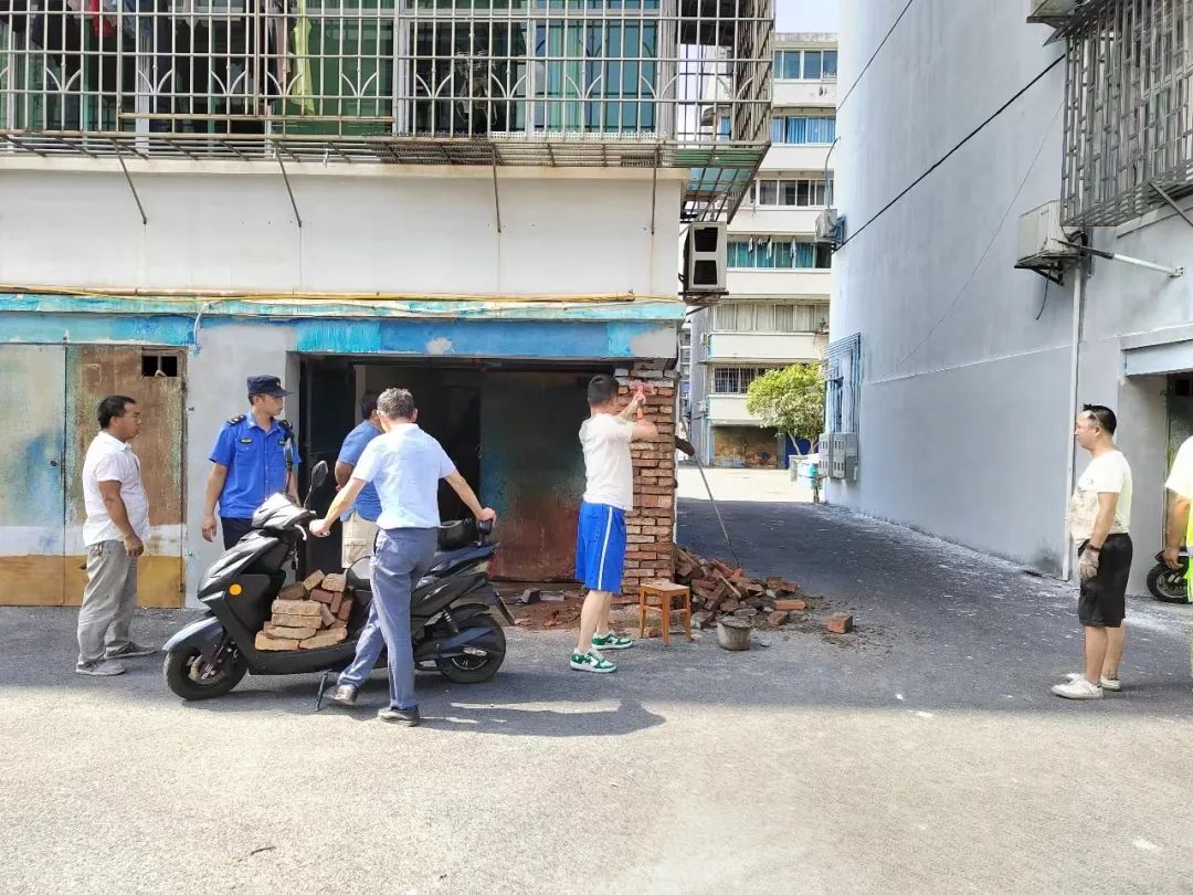 在老旧小区改造中,社区作为居民与施工队沟通的桥梁在施工中遇到任何问题,社区都会迎刃而解,8月27日当天,景华南区网格员接到施工方的来电:南区有为居民将家中车库前用砖块砌墙围挡,这不仅属于私搭乱建,还严重影响了小区整体布局和外观形象,同时也影响了施工方对工程的进展情况。