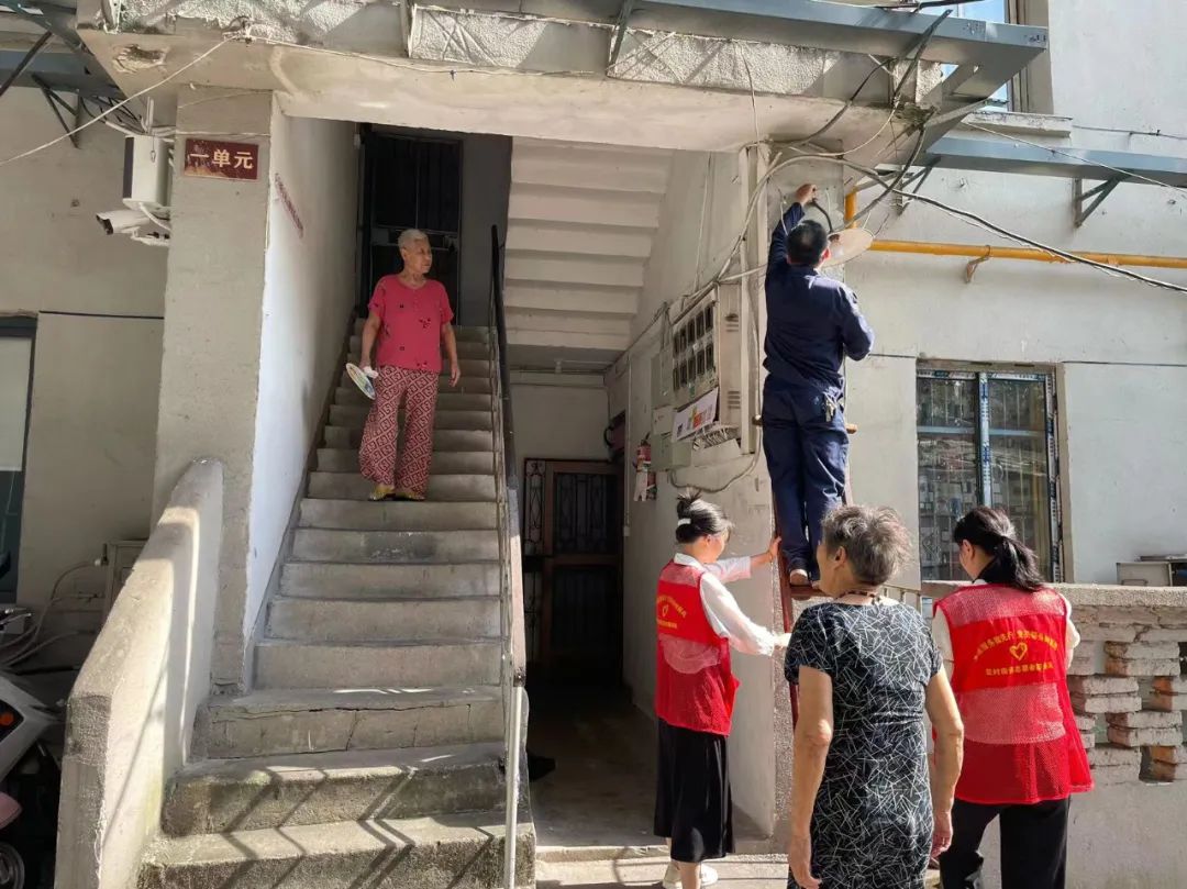 作为“五社联动”试点社区,马鞍山社区积极探索多元主体的资源共享、优势互补,共同奏响“五社联动”社会治理大合唱。9月5日下午两点,高温酷暑,网格员和580志愿服务队一起邀请“城市美容师”——环卫工人来社区乘凉,并送上了绿豆、白糖、毛巾、防暑药品等,在这个炎炎夏日带来一阵沁人的清凉。看着他们洋溢的笑容,网格员内心也得到了满足。下午四点,网格员和城管在外出巡查时,发现幸福家园楼道灯破损,他们立马带领维修师傅前去更换楼道灯。居住在二栋三单元四楼的胡阿姨说:“路灯亮了,我们心里也亮堂堂的。”