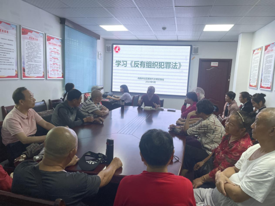 社区志愿者、法律明白人通过开展《反有组织犯罪法》讲座,发放宣传资料、法律咨询等形式,宣传《中华人民共和国反有组织犯罪法》,并向居民耐心解释有组织犯罪的法律概念、《中华人民共和国反有组织犯罪法》出台的重大意义及制定目的。同时,志愿者们鼓励社区居民积极举报揭发有组织违法犯罪线索,坚决打击黑恶势力。