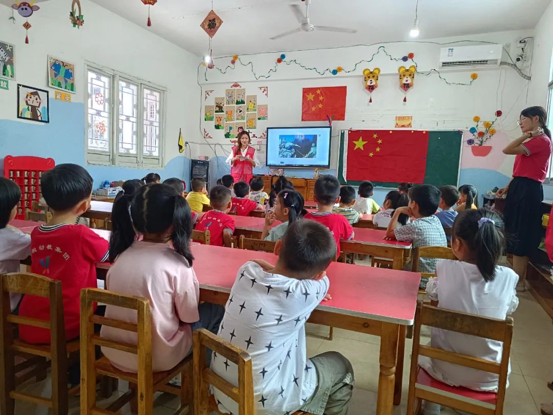 老年分校学员志愿者给小朋友们讲述“九一八防空警报试鸣日”的由来,让他们了解革命先烈、民族英雄和仁人志士的高尚品格和光辉事迹,在他们幼小心灵播下爱国的火种。随后,引导孩子们收看“勿忘国耻 振兴中华”等爱国主义教育视频,铭记红色历史,普及国防教育,增强国防观念。孩子们致敬国旗、学唱红歌,孩子们用纯真的声音、稚嫩的小手表达着对伟大祖国的热爱。