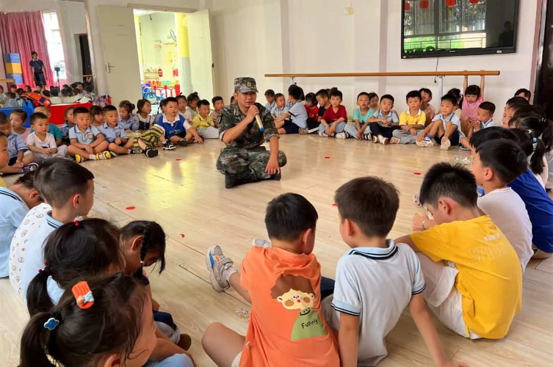 9月18日,新厂街道昌江广场社区新时代文明实践站联合计生协、关工小组、老科协、老体科走进辖区小翰林幼儿园,开展国防教育宣传活动。