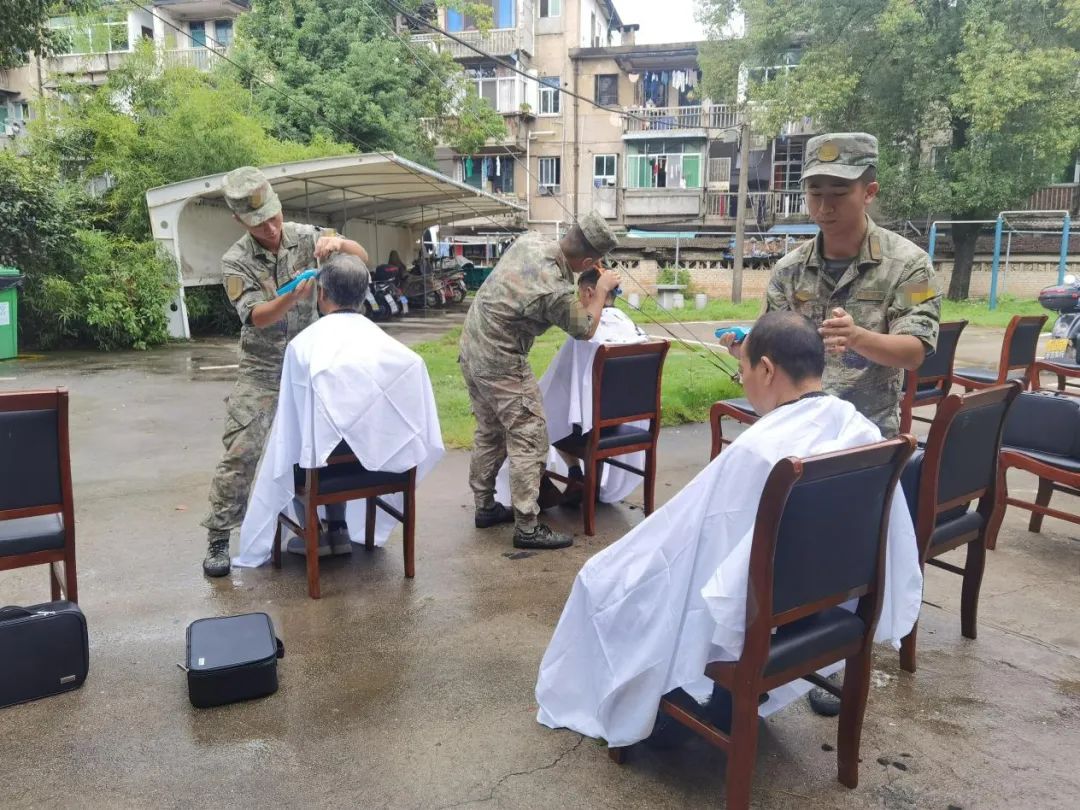 活动现场,驻地部队志愿者为光荣在党50年的老兵理发,并倾听他们讲述部队的难忘岁月,欢声笑语、其乐融融。老兵说:“理了发,人就精神多了,这种活动真好,我们年纪大了,腿脚不太好,在家门口就能享受到这么贴心的服务,谢谢你们!”还有一位老兵家属拉着志愿者的手感动得说不出话来。