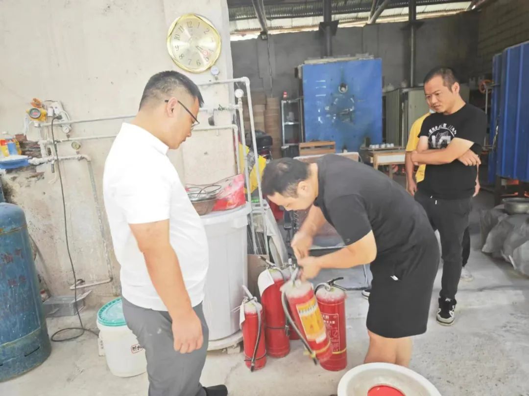 此次消防安全检查活动,重点排查辖区梭式窑线路安装设置是否合理、是否做到气罐与窑炉隔离、管道使用年限及联接是否符合规定等问题,对场所内灭火器进行了检查,指导店家消除消防安全隐患,进一步提升他们的消防安全意识。