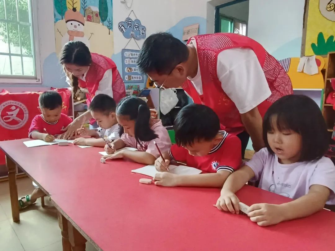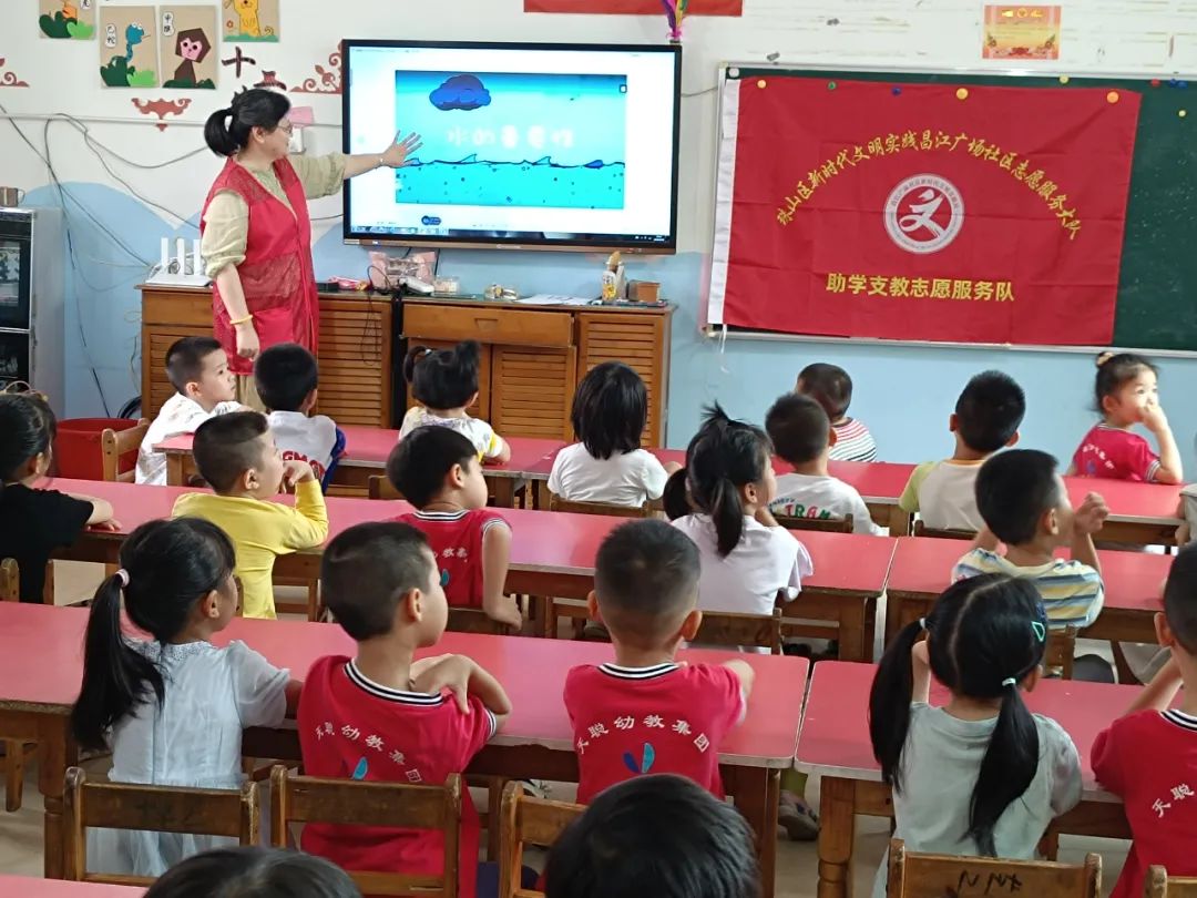 活动中,志愿者通过陪同孩子们阅读课外读物开展绘画想象,观看科普视频,提问引发孩子思考,引导孩子们要保护水资源,珍惜大自然中的水资源。