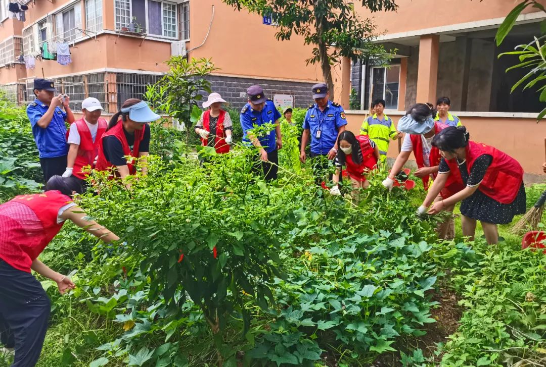 活动中,志愿者们不怕脏、不怕累,徒手将种植在绿化带、公共空地上的菜秧一一清除,并对绿化带内进行清扫维护,将杂草、垃圾、堆放的杂物清理得干干净净。还居民一个绿色的社区环境。