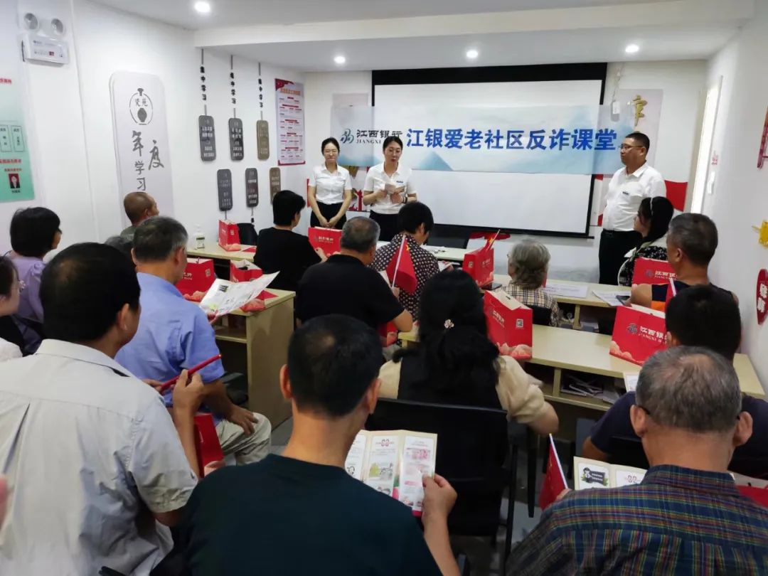 9月26日上午,瓷苑社区与江西银行新厂支行联合开展了“江银爱老社区反诈课堂”为主题的党建共建活动。本期活动主要进行反诈知识分享,江西银行新厂支行员工从什么是电信诈骗、电信诈骗的常见形式、如何识别防范电信诈骗、上当后的补救措施以及识别人民币真伪等多个方面讲解,有效提高老年人防诈、反诈的意识与能力。同时,瓷苑社区通过“精网微格”微信群、朋友圈、上户宣传等线上线下结合的方式分享反诈小知识。