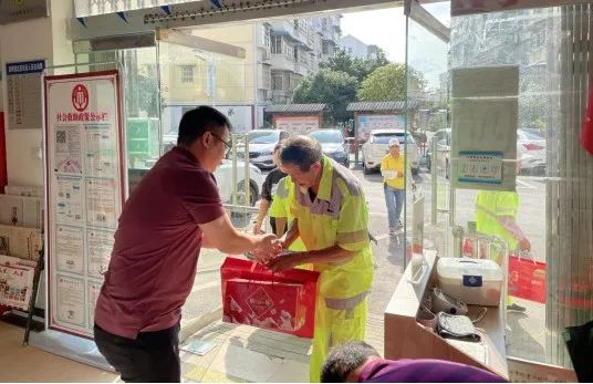 在国庆、中秋“双节”即将到来之际,为了感恩环卫工人的辛勤付出,体现党对人民群众持续的关心关爱,区人大代表到梨树园北苑社区新时代文明实践站开展关爱环卫工人活动,倡导共建更美好的社区面貌。