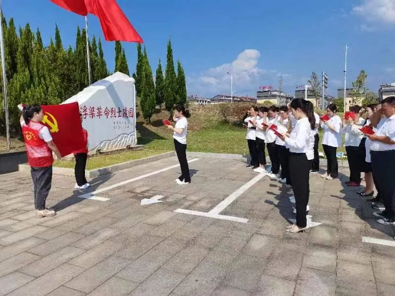 烈士陵园庄严肃穆,烈士纪念碑巍然耸立,全体党员在纪念碑前肃穆站立,怀着无比崇敬的心情凭吊革命先烈,默哀致敬。“我宣誓,我自愿加入中国共产党……”在党员干部的领誓下,所有党员面向党旗,举起右拳,重温入党誓词,随后又学习了《中国共产党章程》表达对党绝对忠诚、传承革命遗志、矢志奋斗前行的信心决心。