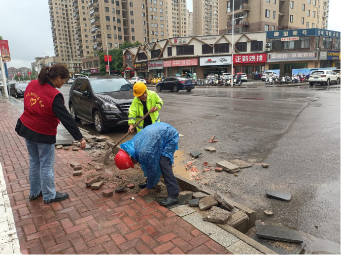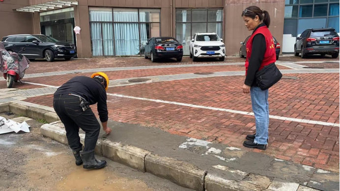 修理路面破损是为群众办实事的一项重要工作,社区志愿者在这方面发挥着重要作用。近日,半边街社区志愿者接到辖区居民电话,反映古镇天御原奕辰游泳馆正对面砖路面破损严重,停车时,不管是老人小孩下车很容易绊倒,存在安全隐患。