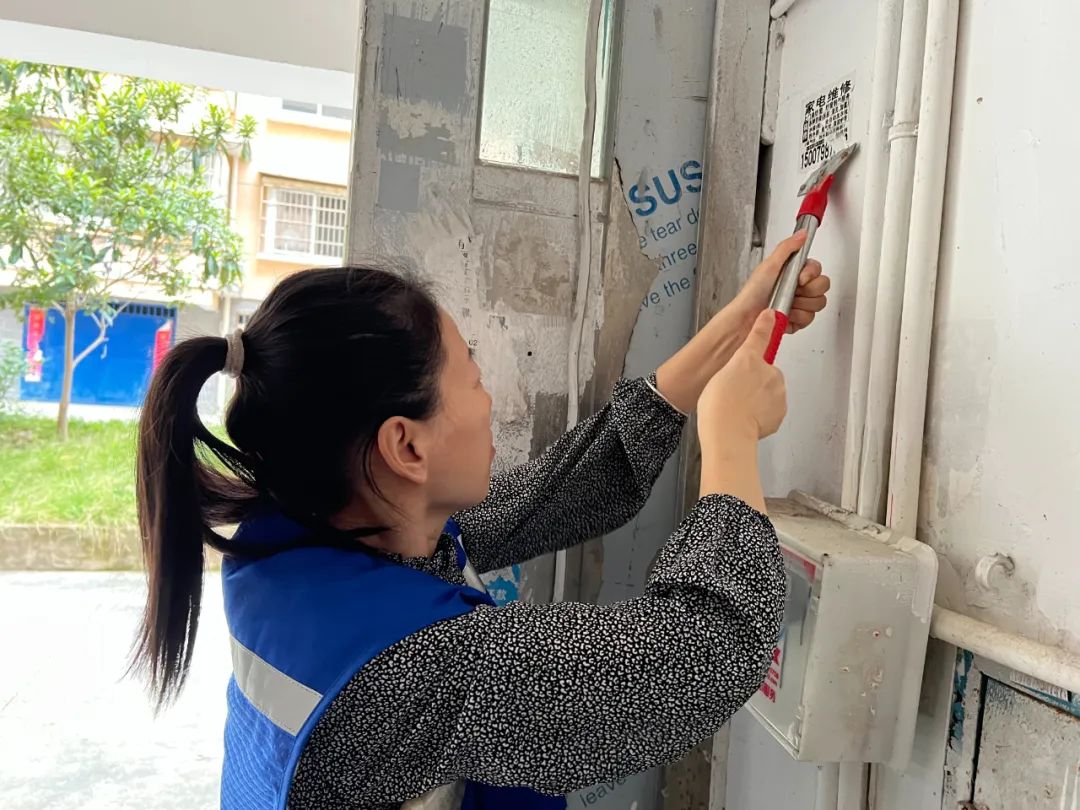 梦园社区开展清理楼道“牛皮癣” 美化社区大环境活动