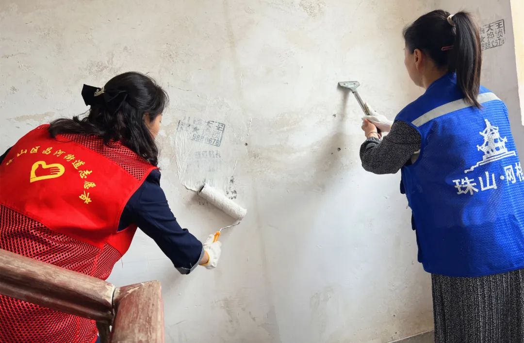 活动中,大家纷纷手拿涂料、刷子、铲子等工具,对墙面上的野广告进行清理。对于广告张贴牢固,社区工作人员就用手手撕,撕不掉的用小铲子铲,而用印章式的垃圾广告志愿者们用涂料一层一层地将其盖住清除。