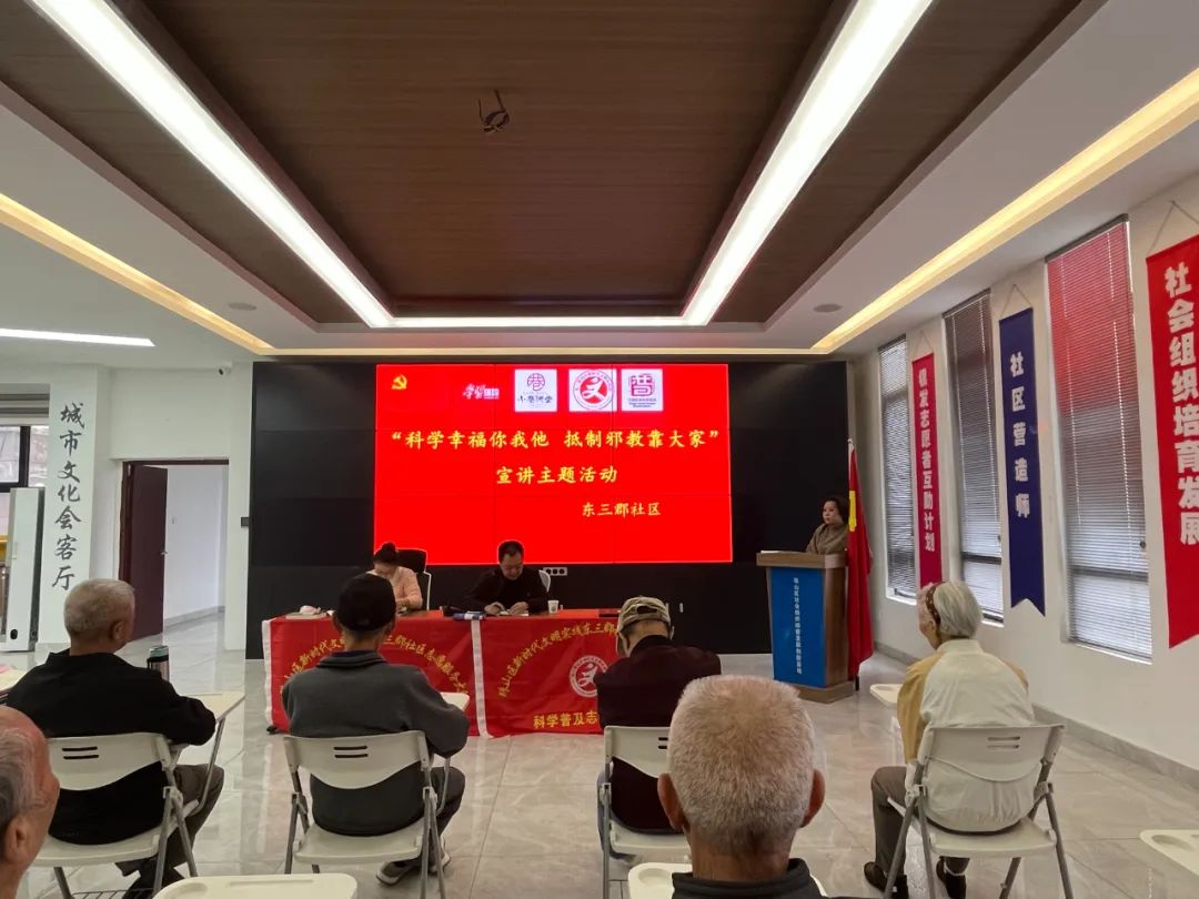 为了进一步增强防邪、反邪思想意识,提高社区居民对邪教的警惕性,并倡导科学、健康、向上的生活方式 ,10月20日,新厂街道东三郡社区组织了一场反邪教宣传讲座,鼓励社区居民积极参与反邪教的讨论和互动。