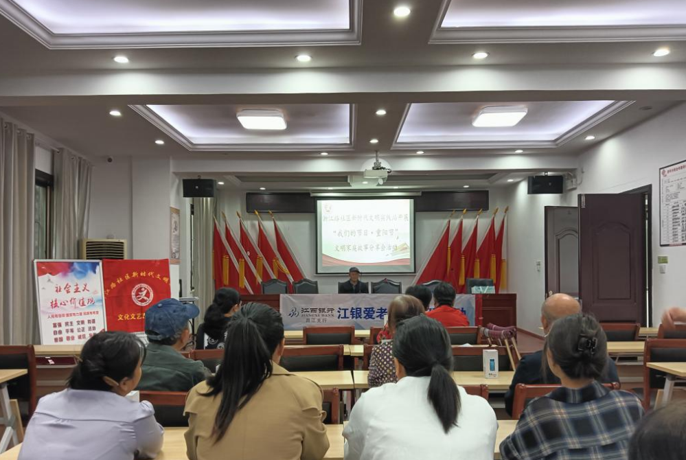 为进一步培育和践行社会主义核心价值观,弘扬尊老、敬老、爱老、助老的中华民族传统美德,在重阳节来临之际,浙江路社区新时代文明实践站联合江西银行开展“我们的节日·重阳节”文明家庭故事分享会。