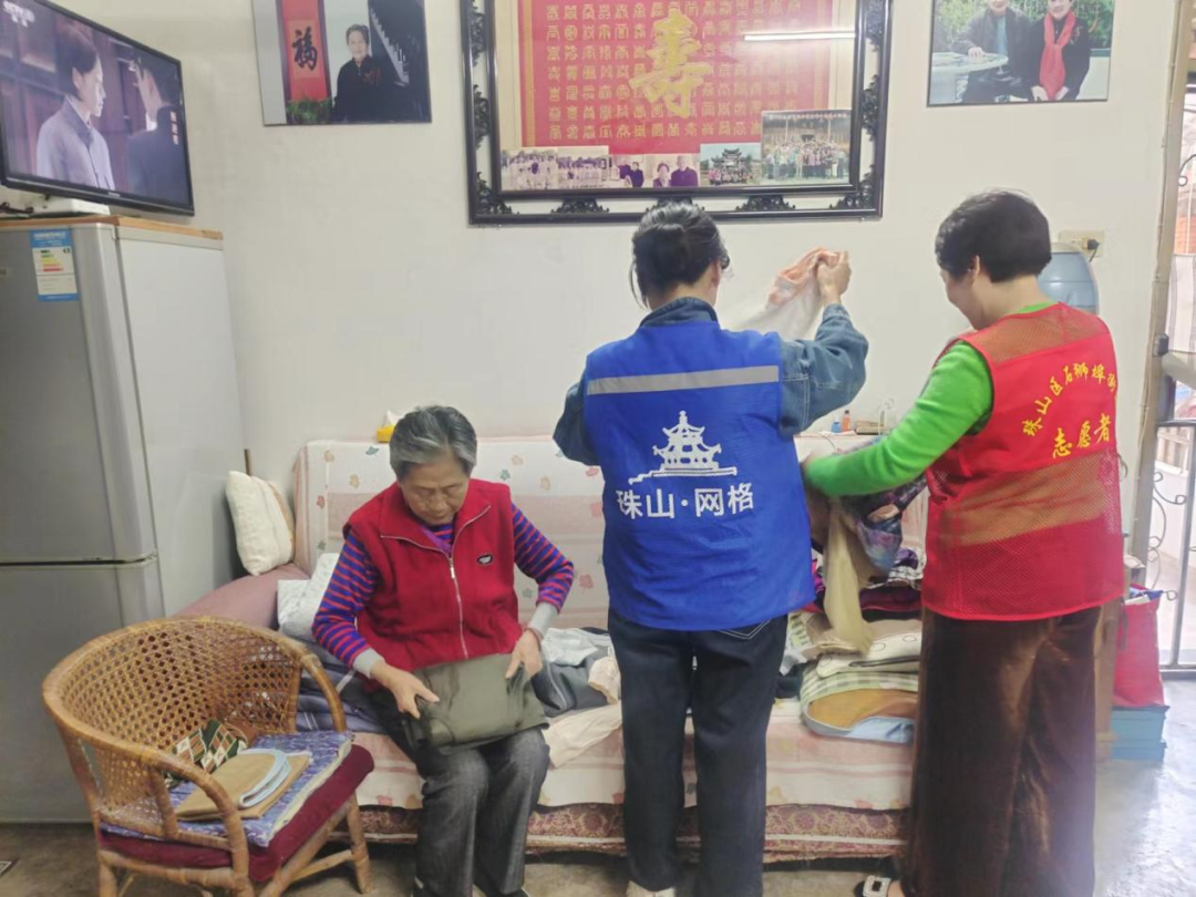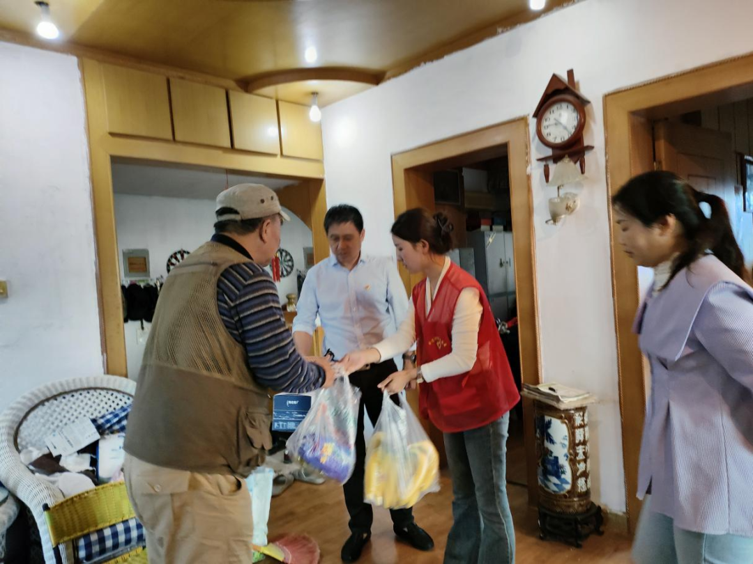 活动中,社区工作人员向辖区老人表达了深深的重阳节祝福,并为他们送上棉被等节日慰问品。随后,金家弄社区党员志愿者们走访慰问辖区独居老人,帮助其清洁室内卫生,扫地、清运垃圾等,并将屋内生活物品进行整理,检查是否有过期药品等。在志愿者的共同努力下,屋子焕然一新,干净整洁。同时在走访过程中,社区工作人员与老人亲切交谈,详细询问他们的身体情况和生活状况,认真倾听老人们的心声,嘱咐他们要保重身体,注意天气变化,保持乐观向上的良好心态,享受老年生活。一句句亲切的问候,一句句朴实的关心,让老人喜笑颜开,度过一个暖心又欢乐的重阳节。