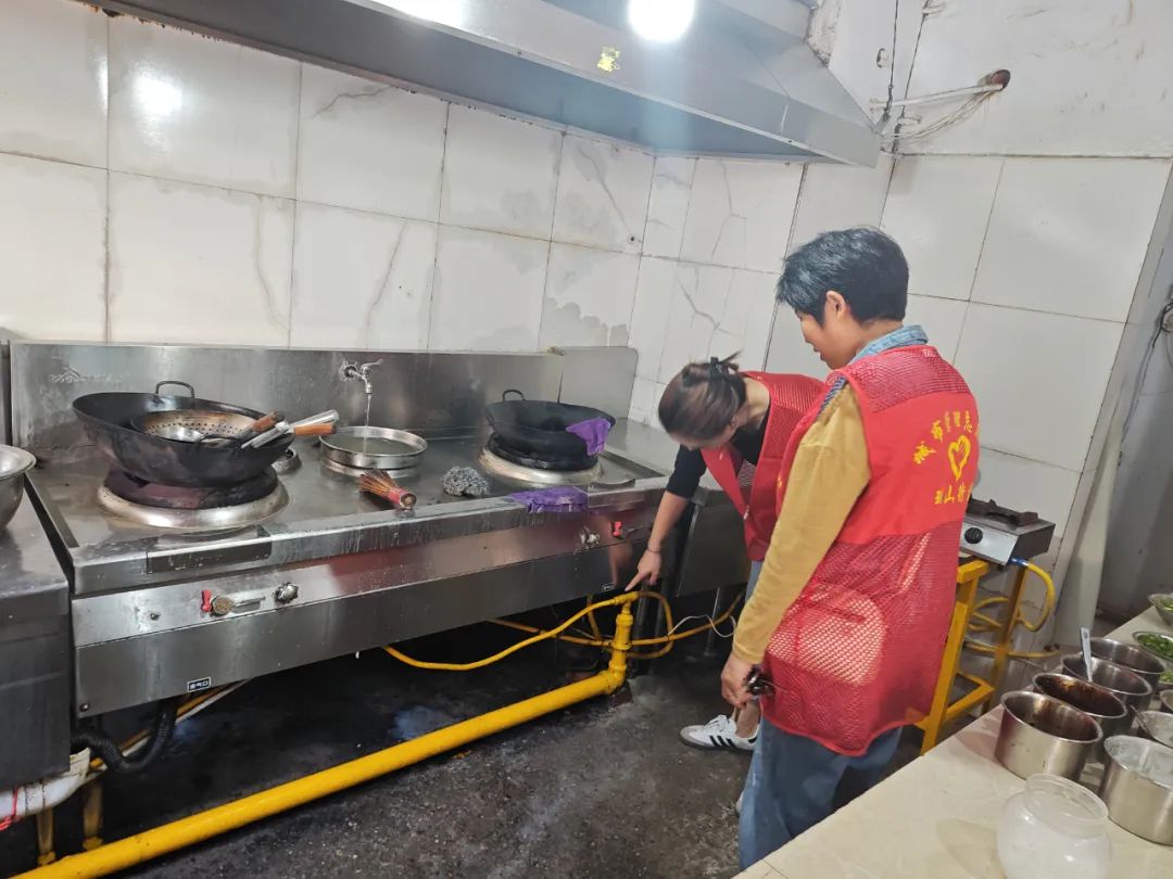 党员志愿者和社区工作人员以网格为单位,对辖区内餐饮店、商户等涉及使用瓶装液化气、管道天然气等场所进行全面排查。对涉及漏气隐患、燃气设施故障等问题劝导商户及时修整,并督促使用液化气罐的商户安装防漏气报警装置。在做好对餐饮、商户燃气安全检查的同时,工作人员逐一对商户宣讲燃气安全常识,强调报警器要实时开启,切勿在燃气管线上悬挂物品,并注意在使用期间通风,定期更换燃气软管等,有效增强了商户及居民的安全防范意识。