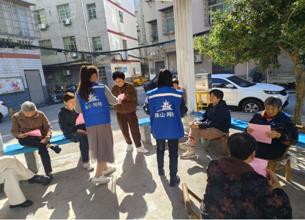 活动中,社区组织精网微格网格员、志愿者走进辖区休闲广场、沿街商铺等人员密集场所,向居民、商户分发反诈宣传单页,同时也结合近期高发的诈骗案件类型重点向辖区的老年人讲解识诈防诈技巧,提醒大家提高警惕,不要轻易向陌生人转账,如若遇到诈骗切莫心慌,要及时报警向警察寻求帮助。在做好线下反诈宣传工作的同时,社区也利用“精网微格”的微网格群进行线上反诈宣传活动,努力扩大此次活动受众范围,营造“全民反诈”浓厚氛围。