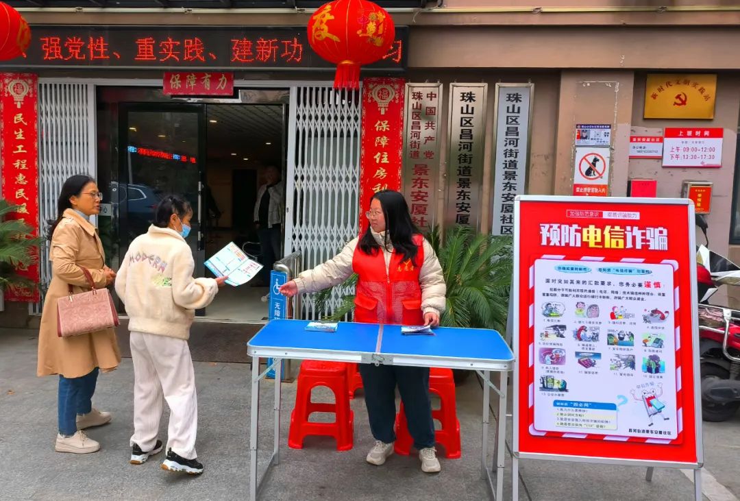 宣传活动现场,志愿者通过发放防诈骗宣传页为居民们科普最新的诈骗手段和诈骗形式,并结合多个诈骗案例详细讲解怎样辨别电信诈骗等知识,耐心解答居民提出的各种疑问。同时提醒广大居民,不要轻易相信陌生电话和信息;不要轻易向陌生人透露自己及家人的身份信息、存款、银行账号等;不要轻易点击可疑链接和陌生人验证码。如果遇到可疑情况,应提高警惕,及时与社区民警、家人等沟通或拨打报警电话,谨防上当受骗。
