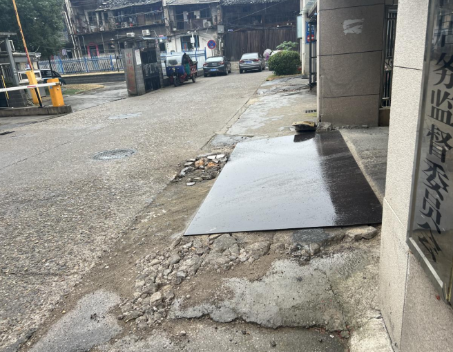 街道群众反映后,社区党委高度重视,网格员进行实地查看,据了解,这不属于背街小巷的改造工程,也不属于市政养护范围,于是社区党委书记联系区住建局以及小区物业,共同派施工队对路面进行集中修整,对破损路面进行改造,经过两个多小时的修补,崭新的路面变得平整干净,居民的出行问题得到了解决。