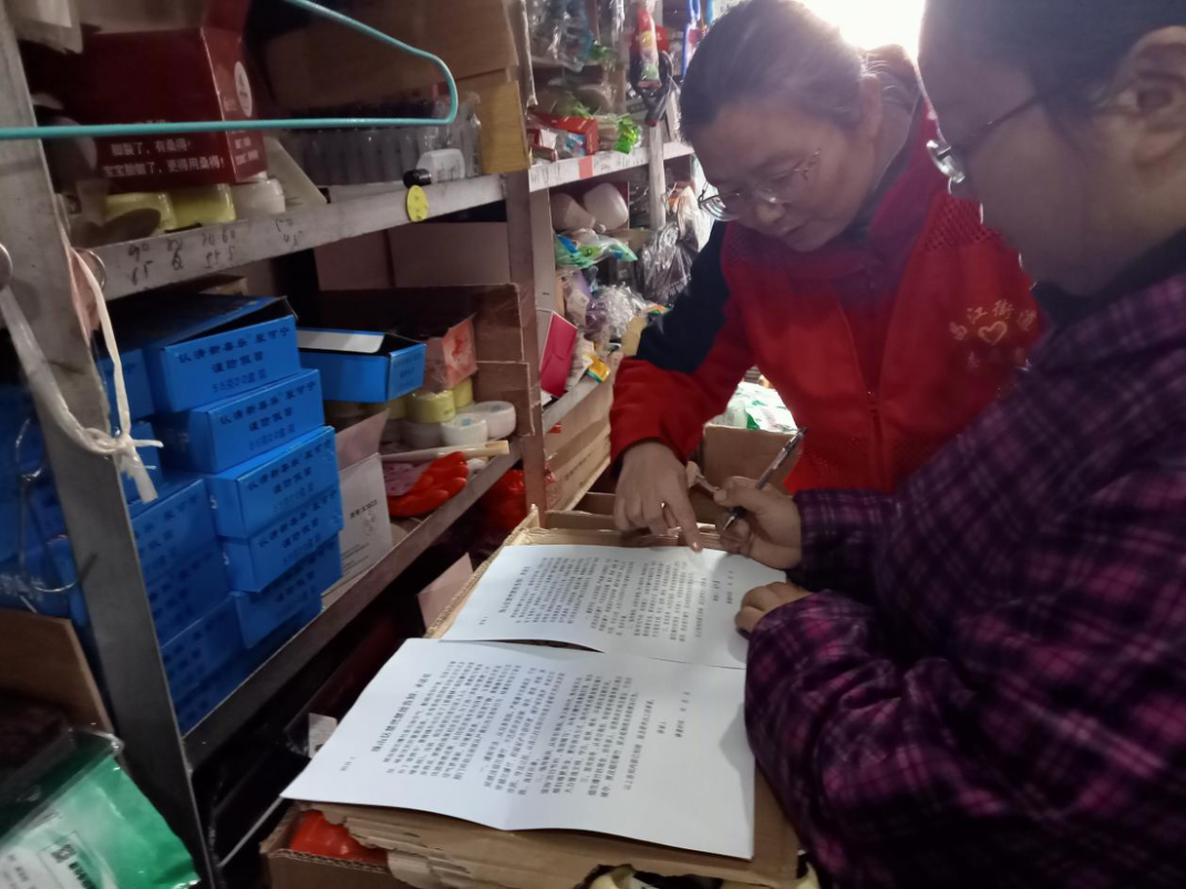 网格员邀请辖区内的妇女群众填写调查问卷,进一步普及公众对于妇女权益保护知识与路径的了解,更好地保障辖区妇女的合法权益。同时在社区宣传栏张贴相关海报,通过织密精网微格宣传网,让广大居民群众学习了解相关法律内容,提高妇女的法律意识和维权意识。