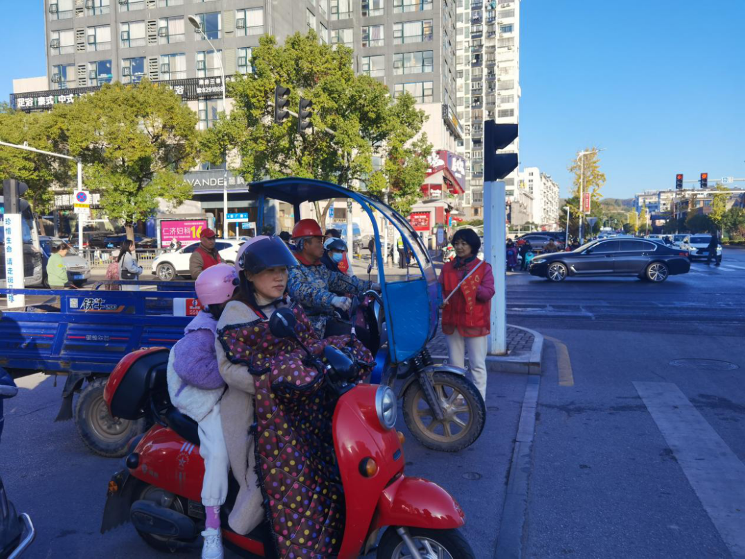 活动中,志愿者走向周边主要路口,维护行人交通秩序,确保行人走人行横道线、按照交通信号横穿道路,劝阻逆行、压线、不戴头盔等交通违法行为等;同时向大家发出倡议,遵守禁行区域行车规定,“一盔一带”安全常在,牢记文明驾驶、安全出行,倡导低碳环保、绿色出行,有序停放单车,不闯红灯,礼让行人,做城市交通秩序维护志愿者,营造文明有序出行环境。