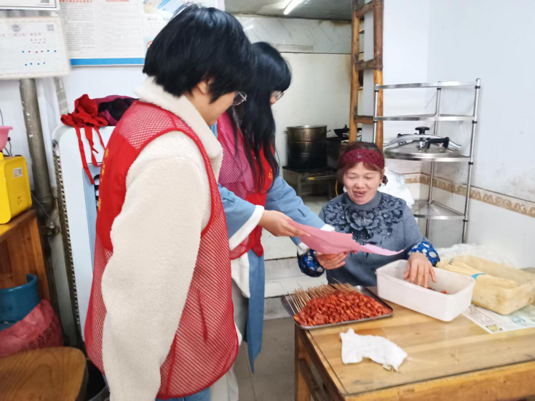 活动中,工作人员通过发放宣传单,告知居民要重视食品安全,守护自己及家人的健康,引导居民选择正规渠道购买食品,如超市、商场等正规渠道,避免购买来源不明的食品,以及收到来历不明的食品包裹时不要随意试吃。同时进入辖区内小吃店进行宣传,宣扬店内工作人员使用健康安全的食材,拒绝隔夜、烂掉的原材料。