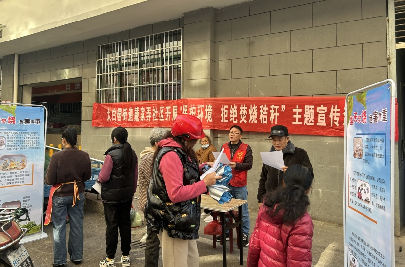 为切实提高群众秸秆禁烧和环境保护意识,有效防治大气污染,改善人居环境,防止火灾事故发生,太白园街道戴家弄社区组织社区干部、党员志愿者、计生协共同开展“保护环境 拒绝焚烧秸秆”主题宣传活动。