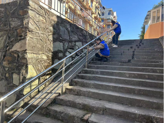 当初建造时部分楼梯墙面无安装扶手、墙壁上长满青苔,地势高低不平,斜坡较多……如遇刮风下雨天气容易打滑,存在极大的安全隐患。为切实提高辖区老年人的出行安全,昌盛社区以“我为群众办实事”为抓手,充分发挥“党建引领全面提升”的作用,结合老年人的需求,全力推进辖区内基础设施管养力度,切实着力解决人民群众身边的操心事、烦心事、揪心事。