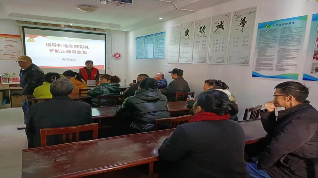 南河社区开展“拒绝高额彩礼护航正确婚恋观”移风易俗宣传活动