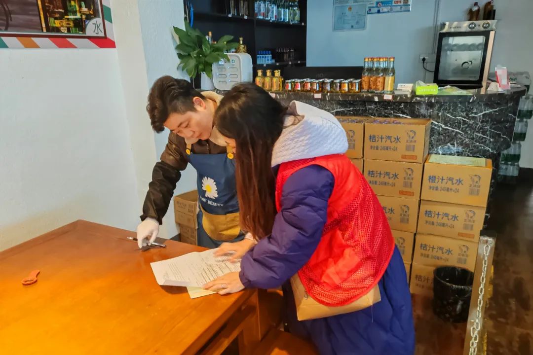 活动中,志愿者们落实食品安全包保责任制,按照包保责任清单,对辖区餐饮、商超、烟酒等经营场所进行逐项检查,查看他们的营业执照、食品许可证、健康证等相关证件,了解店内食品管理制度、外包装及进货渠道,核查证件是否过期、食品来源及储存是否安全等方面,并针对在检查中发现的各项问题下发整改单,督促经营者们尽快整改。同时,向经营者们宣传食品安全的重要性,加强经营者们重视食品安全的意识。