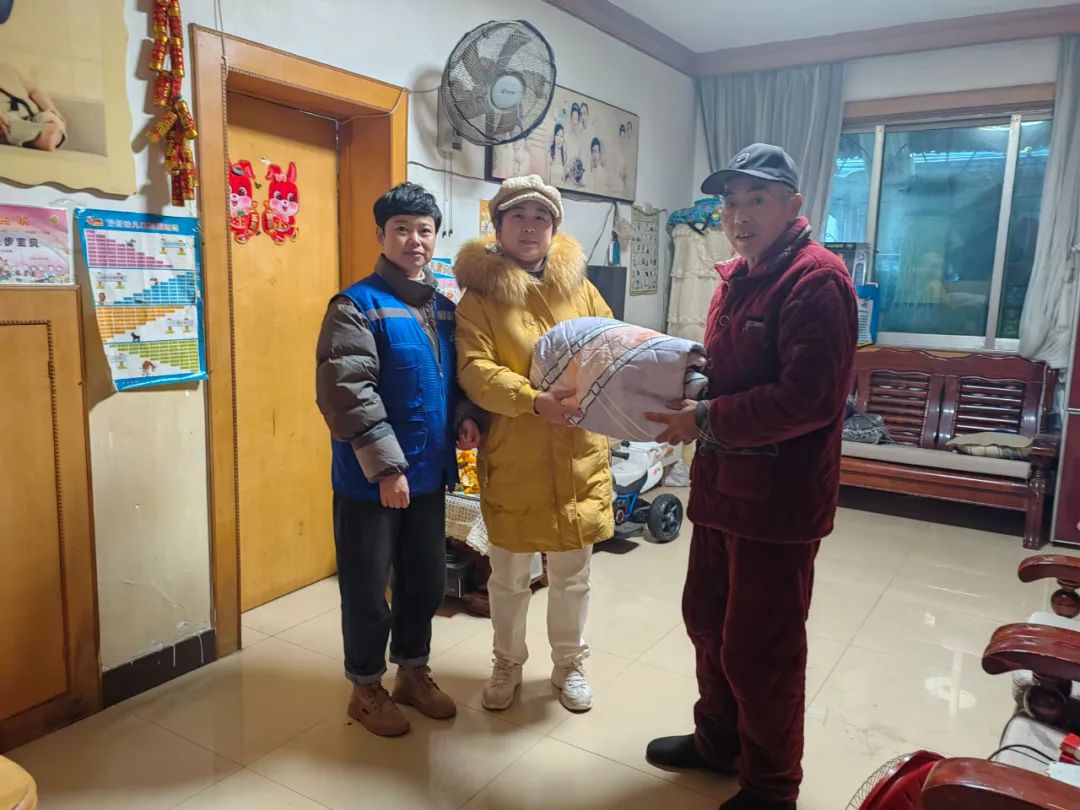 “最近身体好吗?天气越来越冷了,要注意保暖,有困难一定要和社区说。”社区网格员来到居民家中,送上棉被,并叮嘱大家要注意寒潮来临天气变化,及时添加衣物,取暖及用电要注意安全。同时,详细询问居民的生活和身体状况,叮嘱有需要就找社区,鼓励他们坚定信心、克服困难,用积极乐观的心态面对生活。被慰问的居民及其家属十分感谢社区对他们的关心,表示政府的慰问不仅给他们带来了物质上的帮助,还有精神上的鼓励。