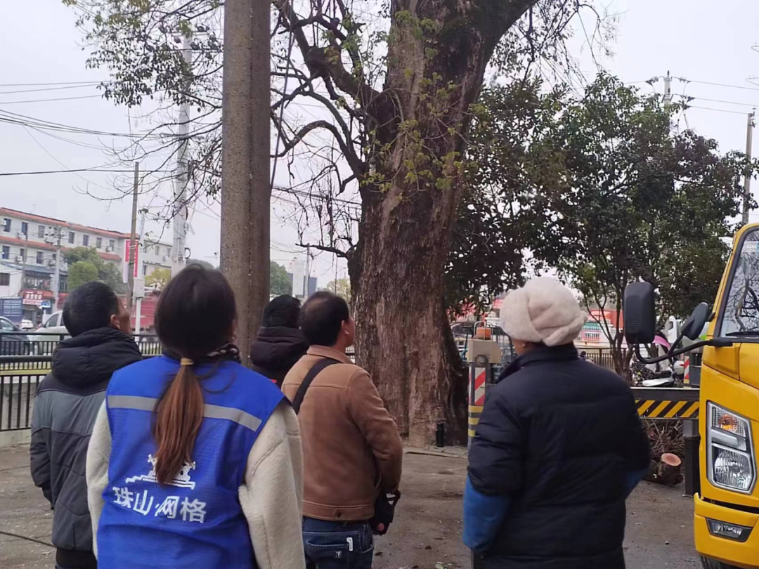 社区得知此消息后,立即进行了实地了解,发现这棵老树确实存在虫患和安全隐患。因为此树较高且粗壮,该社区没有办法处理,社区便立即向所属街道办事处反映此事。经多方协调,确定由专业锯树团队对该树木进行修枝。