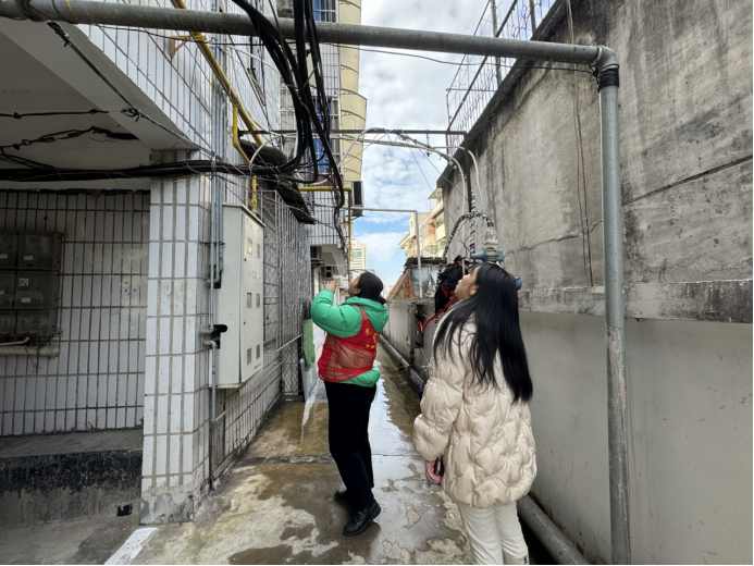 龙珠阁社区网格员看到群消息后,立即联系五楼居民关闭水阀;另一户水泵破裂却长期无人居住的空户,网格员通知楼栋长直接上户关闭整个单元水阀,同时联系自来水公司抢修,后与社区书记及相关工作人员火速赶到现场,并对小区外置水管进行检查。