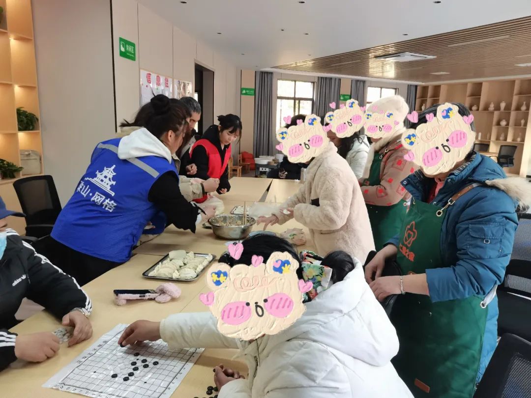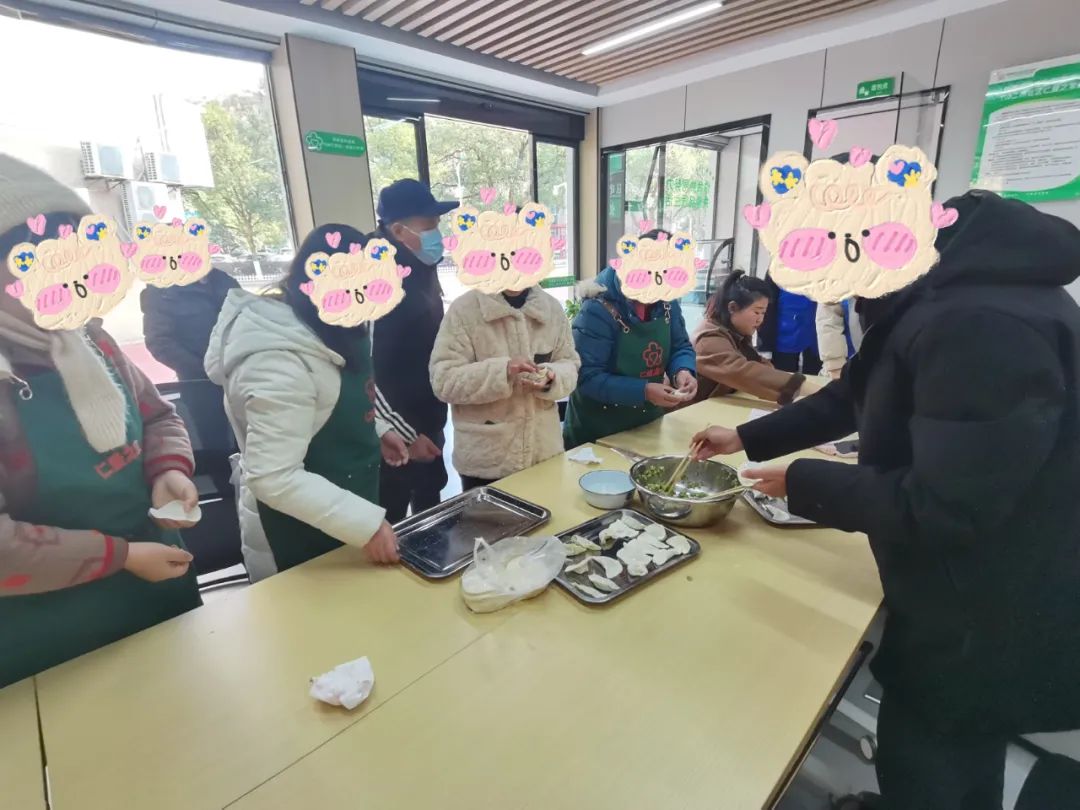 冬日暖阳,欢乐开怀。本场活动在舞蹈表演《欢乐中国年》中拉开序幕,紧接着,大家玩起了“你做我猜”的协作游戏,放松他们的心情,他们欢快的笑声如同音符般跳动,感染着周围的一切。随后,老师让大家轮流上来唱歌,他们都投入其中,乐此不疲。下午大家一起包饺子,有的切馅儿、有的和面、有的包饺子,不多时间,一盘盘饺子已经成型包好。随后被端进厨房,社区工作人员早已把锅里的水烧开,饺子煮进锅里,打着旋、翻转着,不一会,冒着热气、飘着香气的饺子被捞进盘中、盛在碗中。最后,活动以歌曲《新年好》收尾,大家一起吃着饺子迎接新的一年!
