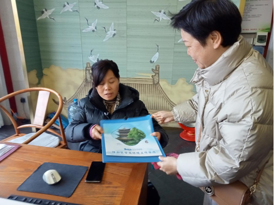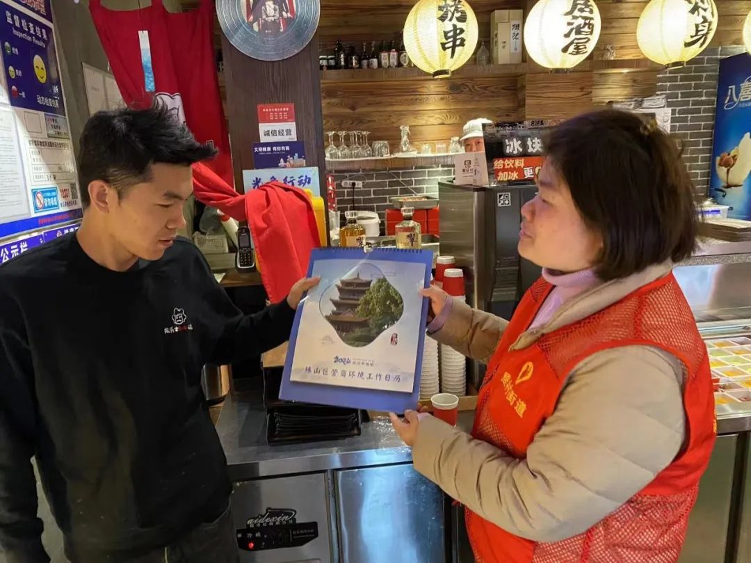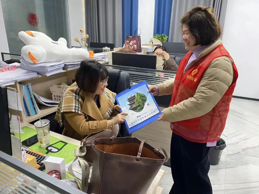 林荫路社区:喜迎新年送台历 走访商户优环境