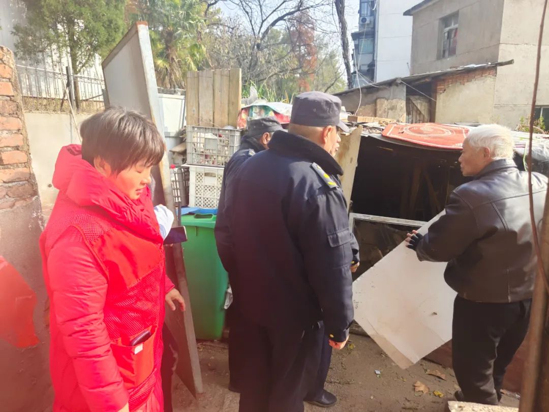 1月2日,一中路社区联合珠山城管在辖区内开展环境整治活动,宣传环保意识,大力推进垃圾死角、小区种菜养鸡、人行道消防道占道违建清理整治。