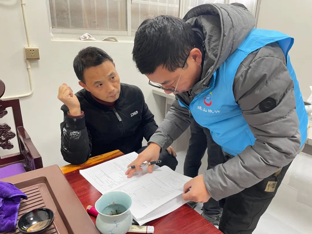 普查员们结伴身着蓝马甲,佩戴普查员证,秉承规范、保密的原则深入企业商户,走访大街小巷,耐心地向普查对象表明身份,说明来意,并发放第五次全国经济普查登记告知书。同时认真查看法人单位及个体经营户的相关证件,仔细询问负责人经营状况及营收情况,指导进行组织结构、人员工资等数据的登记与核实,确保信息无一疏漏、内容真实有效。紧接着,普查员根据纸质版登记表信息录入江西经普办系统,如果系统提示有强制性错误,普查员再一次和普查对象核实,直到普查对象数据准确、指标无误为止。