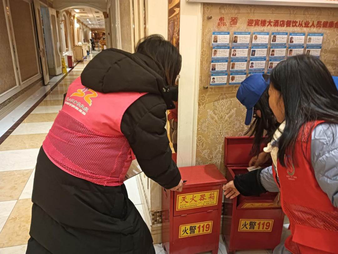 活动中,该社区工作人员、网格员深入辖区老旧居民楼、自建房沿街商铺、宾馆酒店、幼儿园、“九小”场所领域加强安全隐患排查,重点检查灭火器是否配备到位、是否存在遮挡封堵,供电线路是否老化,是否存在私搭乱建,是否有易燃易爆物品等,发现消防安全隐患责令相关人员立即整改。同时向商铺老板及工作人员讲解《中华人民共和国消防法》等相关法律法规,向商户强调对店内的消防器材要经常检查,保证可以随时投入使用,平时要严格遵守安全生产规章制度,经常性排查安全隐患,引导商户自觉遵守消防法律法规,积极排除火灾隐患,保障自身和他人生命财产安全。此外,该社区工作人员边检查边宣传,通过小喇叭循环播放、发放宣传资料等方式向居民、商户讲解消防安全知识, 严防各类安全事故发生。