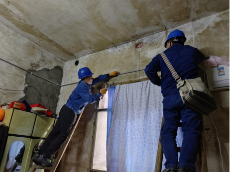 广场社区开展为特困群众更换线路活动