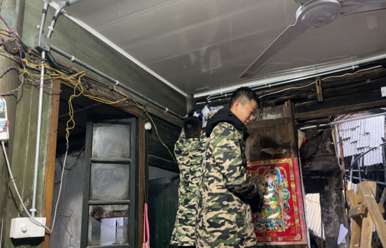 入户过程中了解到,周路口街道金家弄社区作为在珠山区的老城区,辖区内背街小巷居多,大部分困难群众家中线路因年久失修,屋内电线老化问题严重,难以保障他们的日常用电安全,存在消防安全隐患。经过前期调研摸排后,社区第一时间和市政及施工专业人员沟通后,将老化的线路进行了整改更换,加固了安全绝缘胶带,针对一些家中电线杂乱、开关接触不良等情况,检修人员进行了妥善处理,解决这个“大隐患”,使困难群众用上“安心电”,随后,还为辖区困难户耐心宣传安全用电知识,提高群众的火灾防范意识和应对能力。
